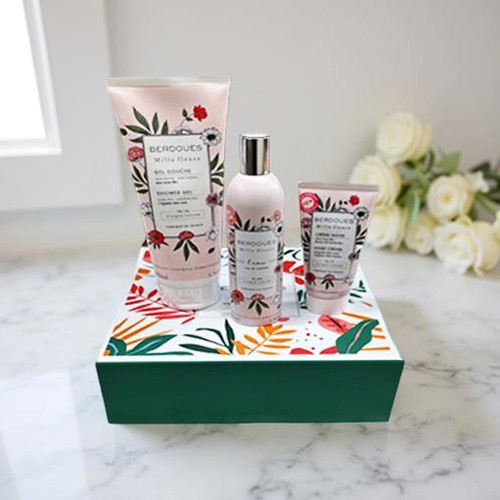 Coffret “Mil Flores” Pack de cosmética de Toulouse compuesto por una fragancia de Eau de Toilette, gel de ducha y crema de manos.