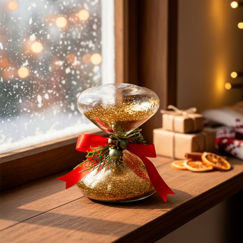 🌿 Maravilloso reloj de cristal con arena dorada, decorado de Navidad .